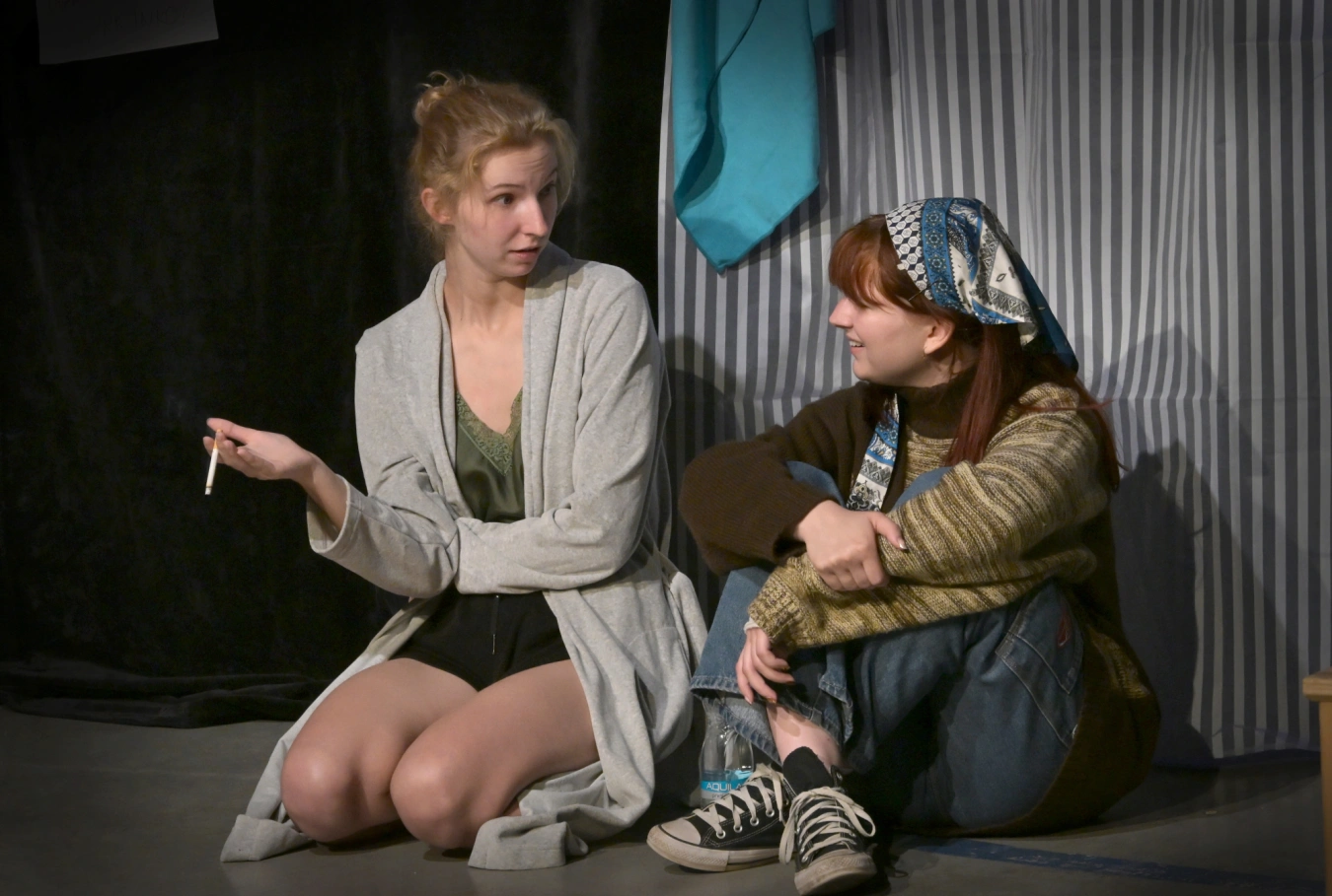 V jednu chvíli přichází silný příběh jedné z postav o zkušenosti s polovyžádaným násilím během pohlavního styku, které přesáhlo vyžádanou míru. Nejdominantnější z trojice hereček vypráví o sexu s cizím mladíkem u ní doma. Během něj z její strany padne požadavek na surovější zacházení, ale sex končí fyzickým a psychickým ublížením. Téma soucitu a hledání oběti obvyklé v tomto kontextu je potlačeno a my nevidíme boj s násilníkem z vnějšku, ale boj dívky se sebou samotnou. K incidentu dojde v rámci dalšího destruktivního nadužívání alkoholu, drog a toxické zacházení s partnerem. To nerelativizuje závažnost dívčina zážitku, ale od publika zároveň nikdo nevyžaduje žádný soucit. Pro mě se tak z výpovědi stává komplexnější pokus o náhled do nitra lidské duše, která se potýká s vlastní temnotou.