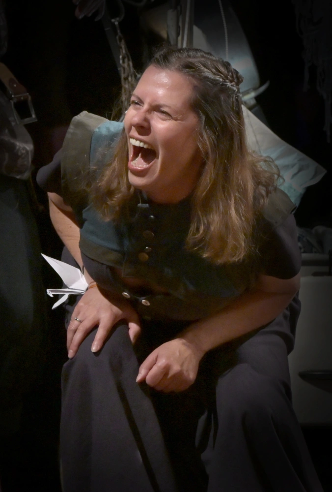 Přestože v úvodu a prvním objevení kantýny (která se postupně směrem k závěru dekomponuje, až se změní v podivné klecové lůžko) strhne publikum hlasitý, precizně rytmizovaný, efektně nasvícený a nakouřený děj, velmi záhy začne prosvítat na povrch, že tahle dramatická kostra sama o sobě neobstojí. Vypráví se totiž opravdu o tom, jak to mají ženy ve válce těžké, na příkladu Kuráže, která postupně přijde o své tři děti. Abstraktní inscenační záměr kritiky všech válek je tak kdesi v hloubce pouze matně tušený, a jiným (brechtovským) nuancím, cynické ironii a přesahům, kritice náboženství a historiografie z pohledu vítězů, výsměchu propagandě, zvratu hodnot a norem a dalším, je dopřán jen nepatrný prostor mezi řádky a otázkou je, zda vůbec.